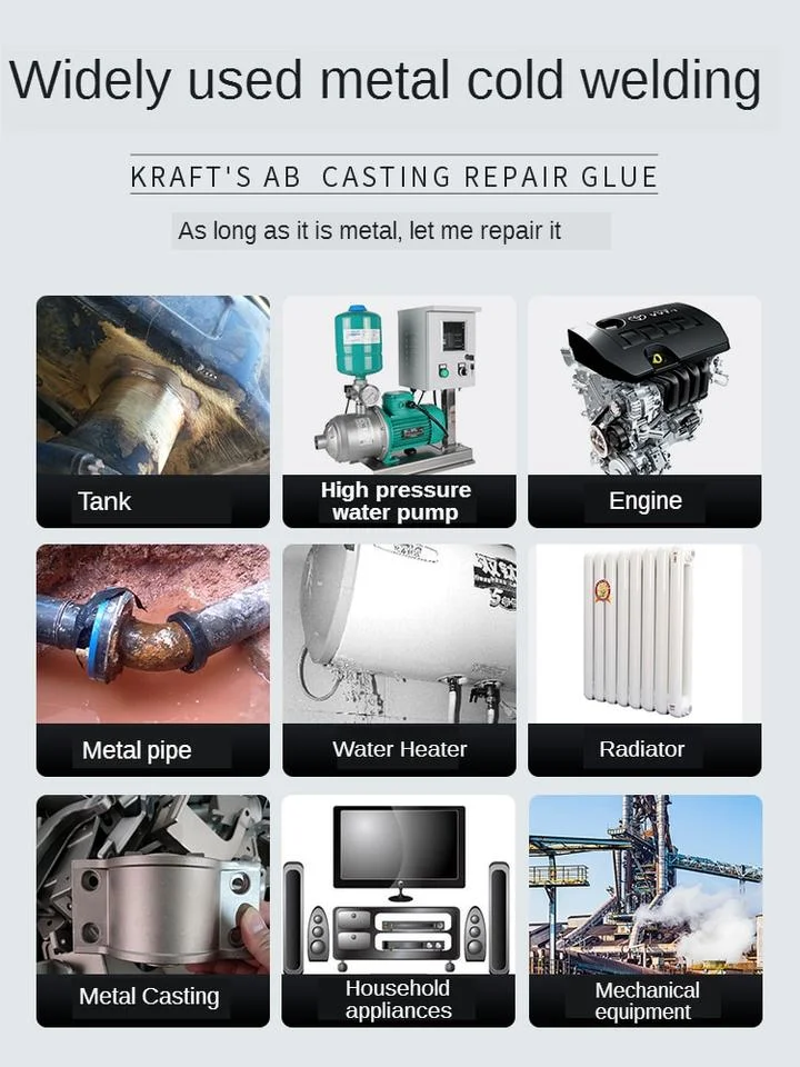 The Strong Adhesive AB Glue is a powerful and quick-drying glue that helps you repair all kinds of metals like iron or stainless steel. It is useful for fixing pipes, taps or other broken metals.
