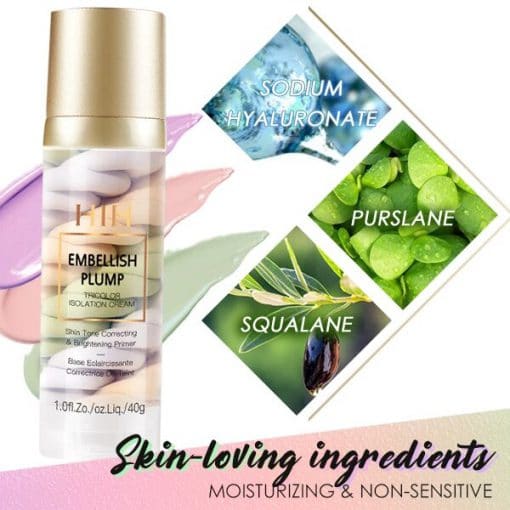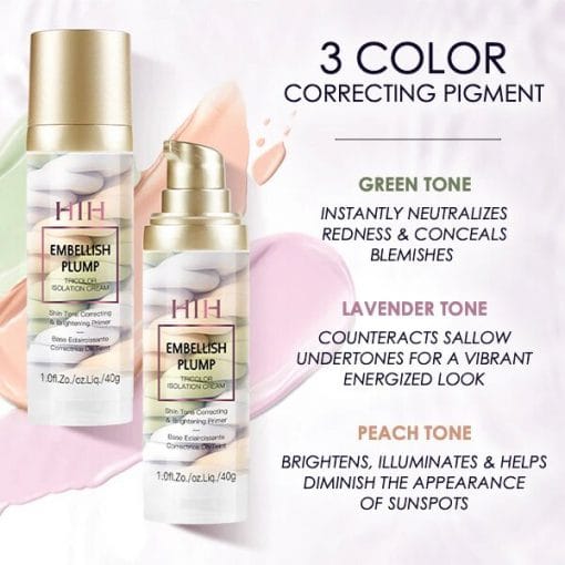 This innovative, triple-swirled makeup base instantly primes, color-corrects, brightens and nourishes your skin for a flawless face. Our base is filled with 3 color creams (Green, Lavender, Peach) in triple-swirled form, allowing to easily, evenly blend after pumping out. So each pump combines 3 main makeup functions (Reduce redness + Brighten + Conceal), creating a baby-like skin.