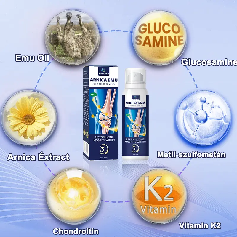 Approved by orthopedic specialists, Raindew™ Arnica Emu Joint Relief Complex delivers fast relief, soothing pain in just 3 minutes. It restores joint mobility within 3 days and supports full arthritis recovery in just 7 days. Formulated with natural anti-inflammatory ingredients like organic turmeric and pure emu oil, this Complex penetrates deeply to reduce inflammation, lubricate joints, and promote long-term healing. Clinically proven and easy to use, it’s the ultimate solution for arthritis sufferers seeking quick relief and lasting recovery.