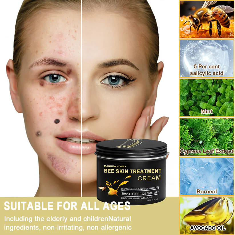 - Package: 1 x Raindew™ Manuka Honey Bee Skin Treatment Cream