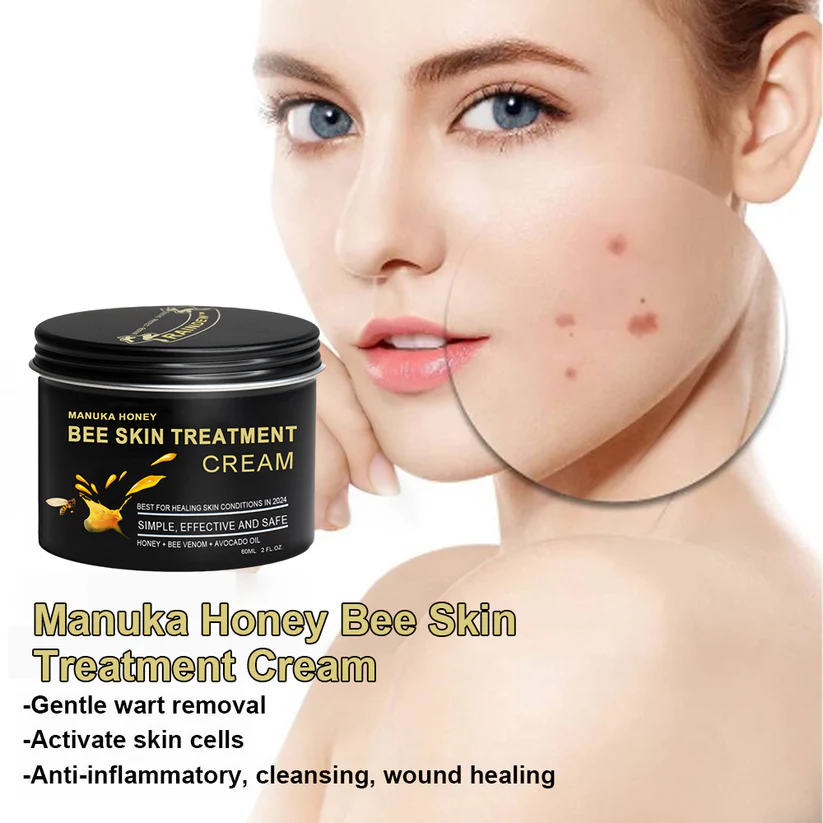 Raindew™ Manuka Honey Bee Skin Treatment Cream offers a solution by leveraging the powerful attributes of bee venom to specifically address diverse skin irregularities like skin tags, moles, warts, and blemishes. Enriched with active components derived from bee venom, this advanced formulation works to dissolve and delicately eliminate undesirable growths.