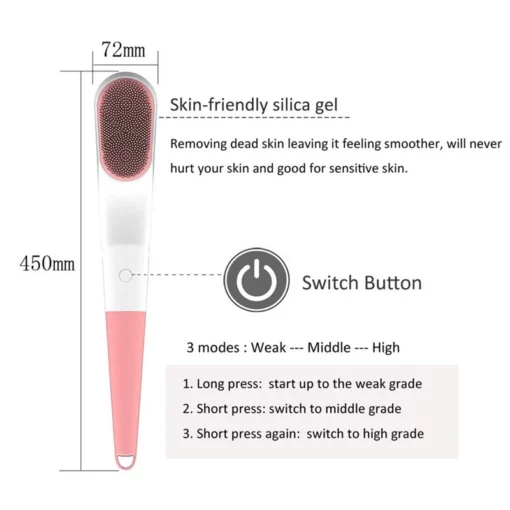 Rechargeable Electric Shower Brush, Ultrasonic Scrubbing Shower Brush, ELOSSA Electric Shower Body Brush Waterproof Long Handle Bath Brush for Body Cleaning Exfoliating SPA Massage Scrubber for Skin