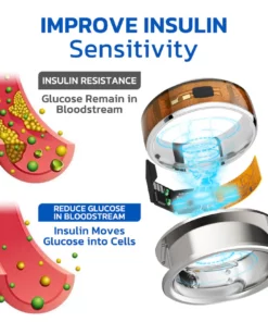 The Remifa™ SugarRing Health Control Electroacupuncture Ring to enhance insulin sensitivity. This method delivers controlled electrical pulses to stimulate muscle tissue, increasing glucose uptake by muscle cells. The muscle contractions facilitate efficient conversion of glucose into energy, reducing blood glucose levels.