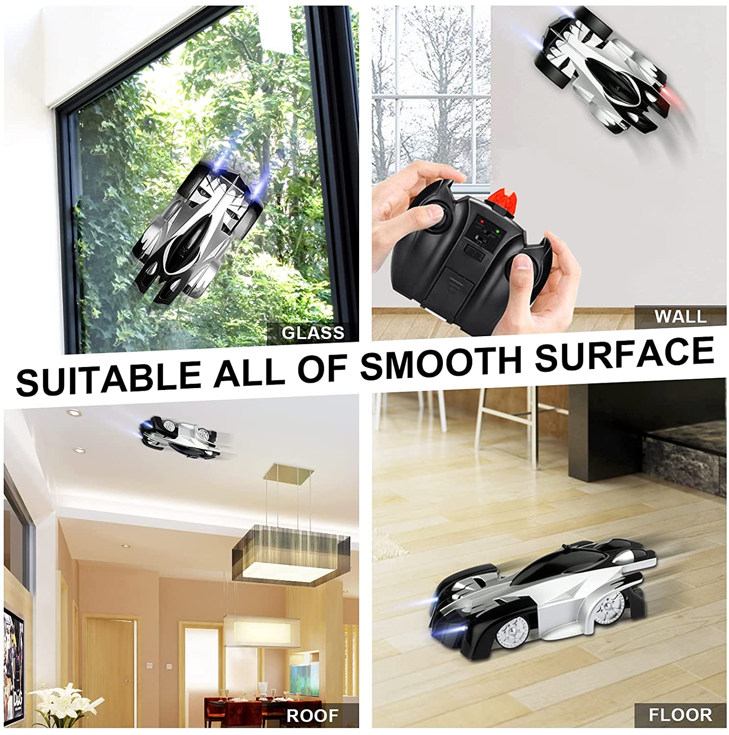 This new Remote Control Wall RC Car Toy with aerodynamic design has “Wall/Floor” Dual Mode, it can steadily climb the ground, flat walls, mirrors, windows and even the ceiling.