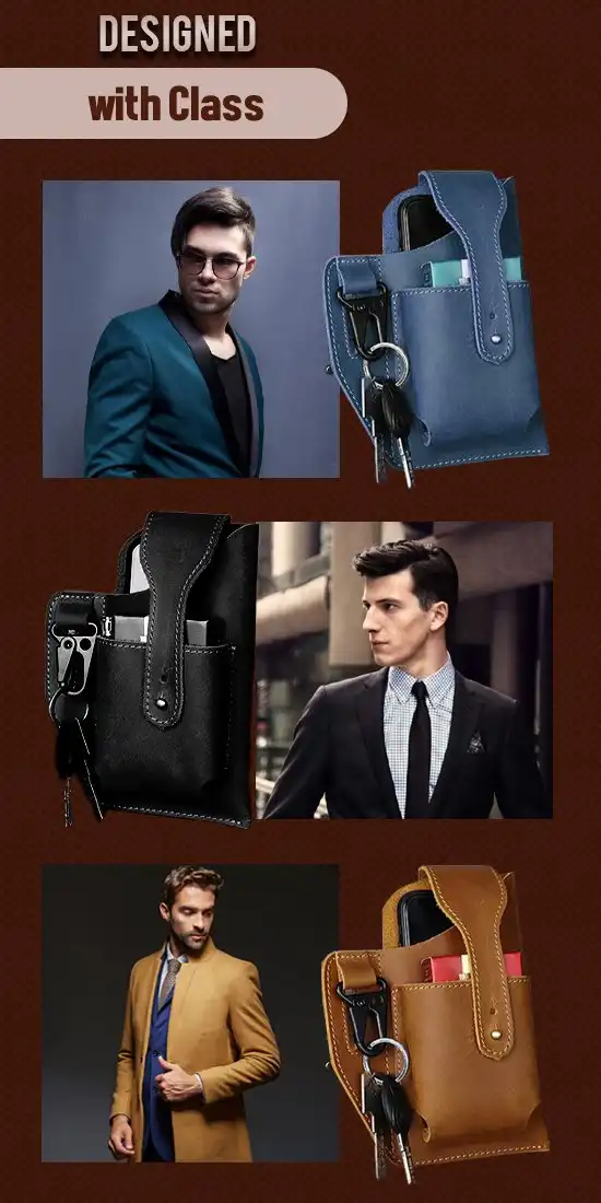Strong and sturdy, stylish design and small size with ample space to put all your stuff! Reasonably arranged pockets for cell phones, cigarettes, driver’s license, keys and other items, as well as a decent amount of money. Compact size and large capacity to meet daily demands! Small size and light weight. It can be used with your choice of belt, which saves effort and makes it more useful. No need to hold or carry it in your hand!