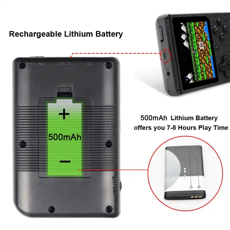The game console has 400 classic FC games, it takes you back to childhood fun. 3.0 inch screen, ultra-thin and compact design, mini enough for you to realize. Support two player mode by connecting gamepad, you can play with your partner.