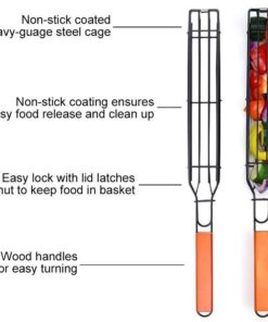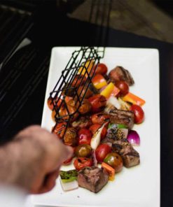 The unique basket design makes for easy flipping – no need to use a disposable skewer! Just chop kabob components like they’re about to be skewered, but instead of impaling them on a stick, just place them in the baskets. EASY PEASY!