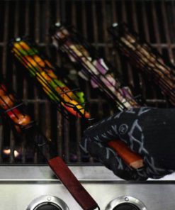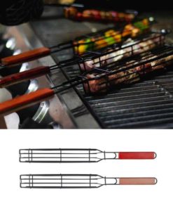Reusable Kabob Grill Baskets cradle meat and vegetables for easy flipping. Grill effortlessly, quickly, and easy no mess and easy clean too!