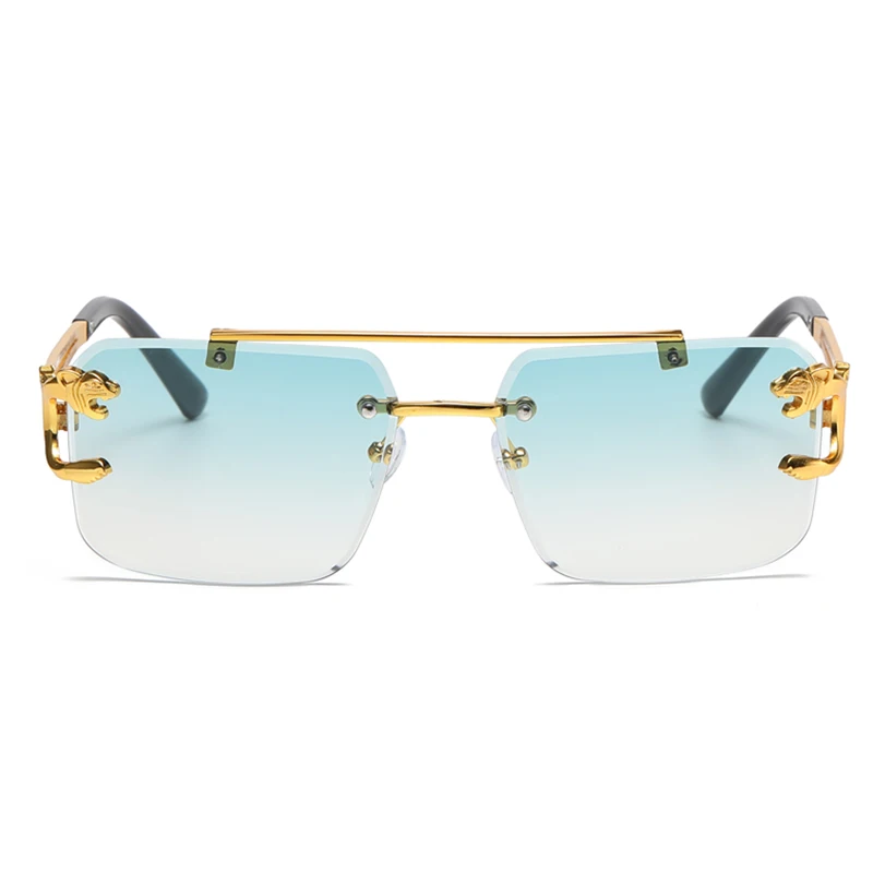 Vintage Rimless Sunglasses Men Women Fashion Square Shades Eyewear New Double Bridge Gradient UV400 Sunglasses