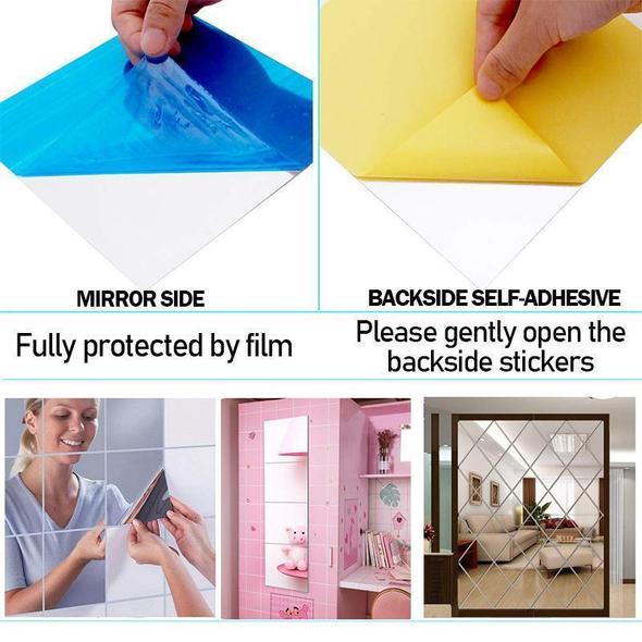 Creative home decoration. This is a decorative mirror, basically that can transform your room to a classy, trendy style. After the paste, tear the protective film on the surface. The finished product is bright, but try not to touch or rub it. The mirror is designed to be light and then but not wear-resisting.