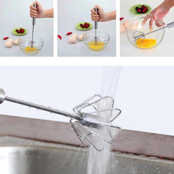 Push the handle down and up to whisk and mix in seconds with Self-Spinning Mixer Whisk!