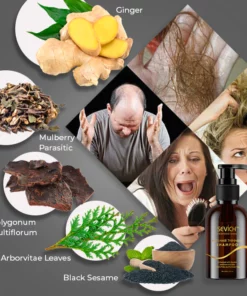 - Core ingredients: Ginger, Mulberry parasitic, Polygonum multiflorum (He Shou Wu), Arborvitae leaves, Black sesame