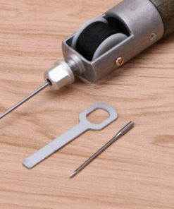 This set includes the Lock Stitch Awl, two needles (one heavy, the other fine) and tightening wrench which can be stored in the contoured wood handle as well as a spool of black thread.