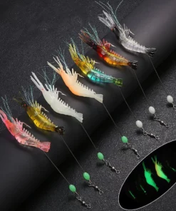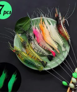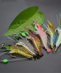 GLOW IN THE DARK SHRIMP: Fluorescent material was put on the inner hook of the shrimp bait, it supports night fishing,nice gift for fishing lover