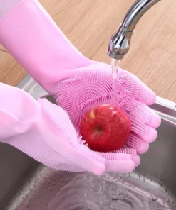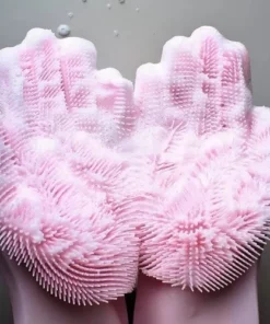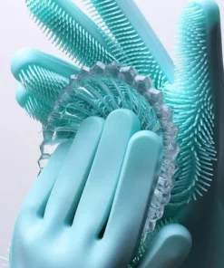 The innovative design of these silicone cleaning gloves makes them extremely easy to use and clean. These handy silicone washing gloves have dishwashing brushes built in the palm of your hand… literally!