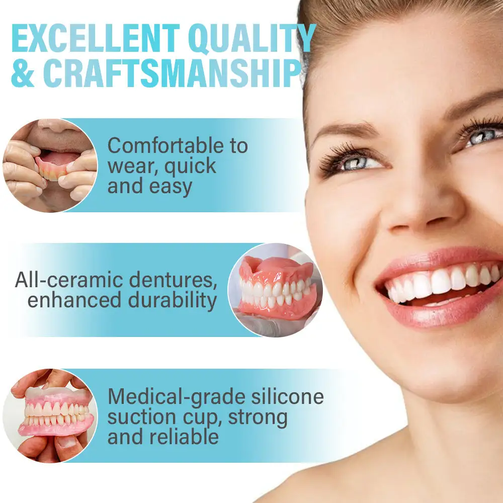 🌟 Easy Fit, Seamless Comfort: Enjoy dentures that adapt perfectly to your mouth from the moment you put them on. Our cutting-edge design ensures a snug and secure fit, providing exceptional comfort that feels like a natural part of your mouth. You can go about your day with confidence, free from discomfort or shifting, allowing you to eat, speak, and smile without any hassle or worry.