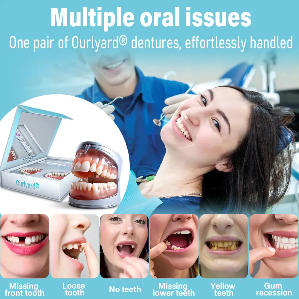 Welcome to Ourlyard® Silicone Full Denture Set, where cutting-edge dental innovation meets affordability. Our product offers you professional-grade dentures that look and feel just like the real thing, but without the hefty price tag. Transform your smile and regain your confidence with our easy-to-use, high-quality denture set.