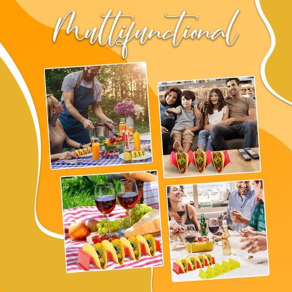 Design with a beautiful and colorful taco racks, will add more creativeness for your taco party, family dinner time ! This taco holder is 10 percent wider, 6 percent thicker, and 5 percent more accommodating, making it easier for you to use.