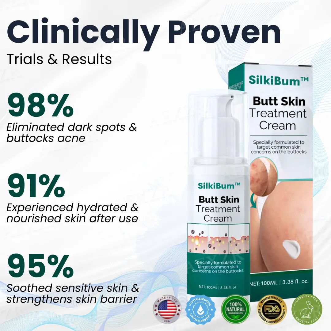 SilkiBum™ Butt Skin Treatment Cream has been scientifically tested to deliver real, visible improvements. In a 2-week clinical study with 200 participants, results showed a significant reduction in butt acne, rough texture, and dark spots, with users reporting smoother, more hydrated skin.