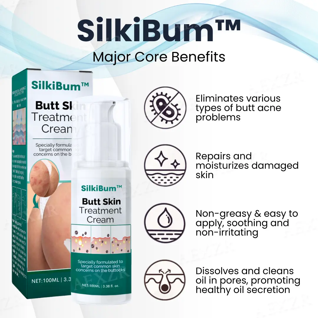 SilkiBum™ Butt Skin Treatment Cream is meticulously designed to address the most common skin concerns affecting the buttocks, including acne, rough texture, hyperpigmentation, and loss of elasticity. Its powerful blend of active ingredients works at a deep cellular level, penetrating the skin to unclog pores, fight breakouts, and prevent new blemishes from forming. Unlike regular body creams, SilkiBum™ is specially formulated for the unique skin of the buttocks, where friction, sweat, and prolonged sitting often lead to irritation and breakouts. By incorporating exfoliating agents, it gently removes dead skin cells, preventing clogged pores and promoting a smoother, more even-toned surface. This process not only helps clear existing blemishes but also prevents future flare-ups, ensuring long-term skin clarity.