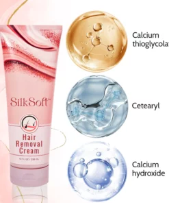 SilkSoft™ Hair Removal Cream is a product that uses a combination of active ingredients to dissolve hair at the root level. Its main ingredient, calcium thioglycolate, is a strong reducing agent that breaks down hair protein. The cream also contains soothing and nourishing ingredients that help to hydrate and calm the skin during the hair removal process.