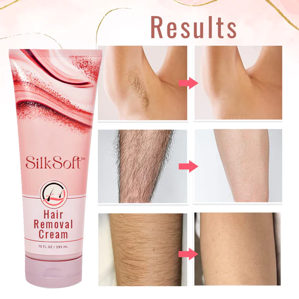 Achieve smooth and hair-free skin painlessly and hassle-free with SilkSoft™ Hair Removal Cream!