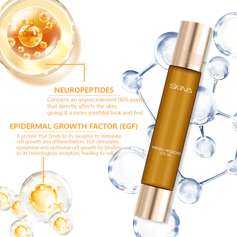 SKIIVA™ EYE OIL is known for its lifting effect, as it freezes wrinkles, hydrates the skin and improves the elasticity. And it contains Neuropeptides and Epidermal Growth Factor to reduce visible dark circles and puffiness.