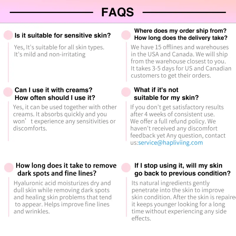 It can solve skin aging problems such as deep wrinkles, fine lines, puffy eyes, dark circles, under eye bags,dark spots,melasma, hyperpigmentation, rough texture, and sagging skin, etc.