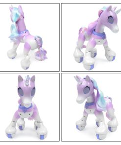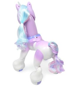 - Touch-Sensitive – Touching the nose and back will have different reactions. The unicorn loves radishes, sugar cubes and apples, can make the sound of eating them