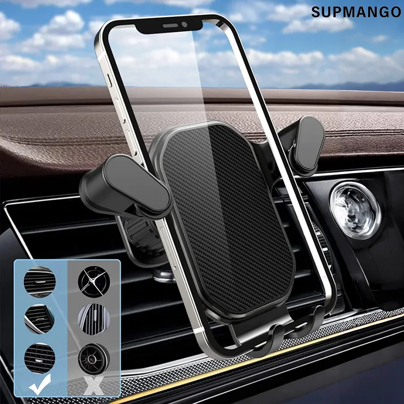 New Gravity Car Phone Holder Air Vent Hook Phone Mount 360-Degree Rotation Smart Phone Holder for Car One-Hand Placement