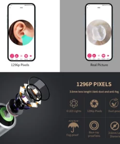 • High-Resolution Camera :Equipped with a 1296P high-resolution camera, this smart visual ear cleaner ensures precise visualization of ear wax during cleanup.