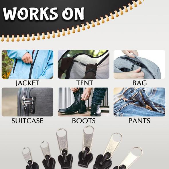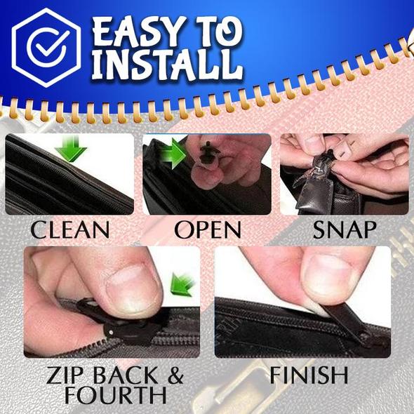 SnapZip Instant Zipper Fixer attaches & zips on to fix split zipper tracks, broken slider, & up to 3 missing zipper teeth, requiring no sewing or tools. Easy to install & durable.