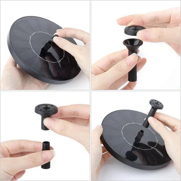 The solar panel draws energy from the sun and generates it. Note: Change the water occasionally to prevent dirt and clogging in your fountain!