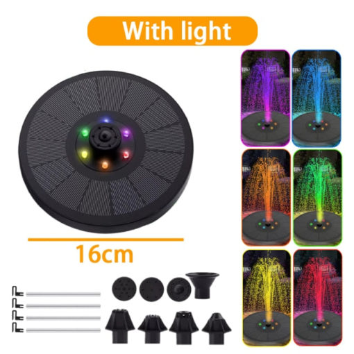 This was smaller than i thought it would be but i enjoy it! I put it in our bird bath which is only 2 or 3 inches deep and it worked fine. Started working as soon as i went out into direct sunlight. I haven’t tried all the sprayer options yet but the one i tried today sprayed about 9 inches high. The spray didnt fan out like i hoped but one of the other options might do that. This has a ring of foam on the underside so it floats around instead of sitting in one spot. Overall i like this product and it adds a little movement to the area. Hopefully it will attract the birds for a drink.