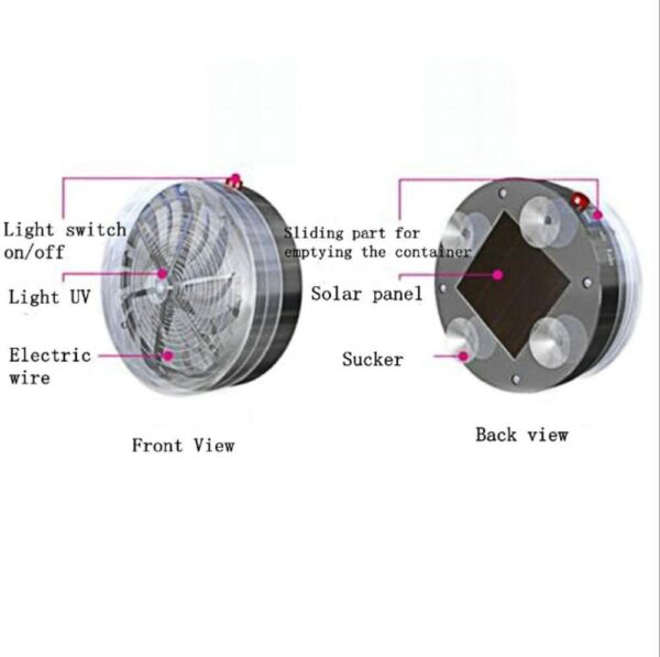 This Lamp is also available in a variety of colors. Solar powered It is possible to do it Works without the need for plugs or batteries Furthermore,Super-grip suction pad Solar-Powered UV Lamp It sticks well to any surface. This Lamp is also extremely energy efficient. Chemical-free extermination of pests This Lamp is also available in a variety of colors. Portable And Great for traveling.