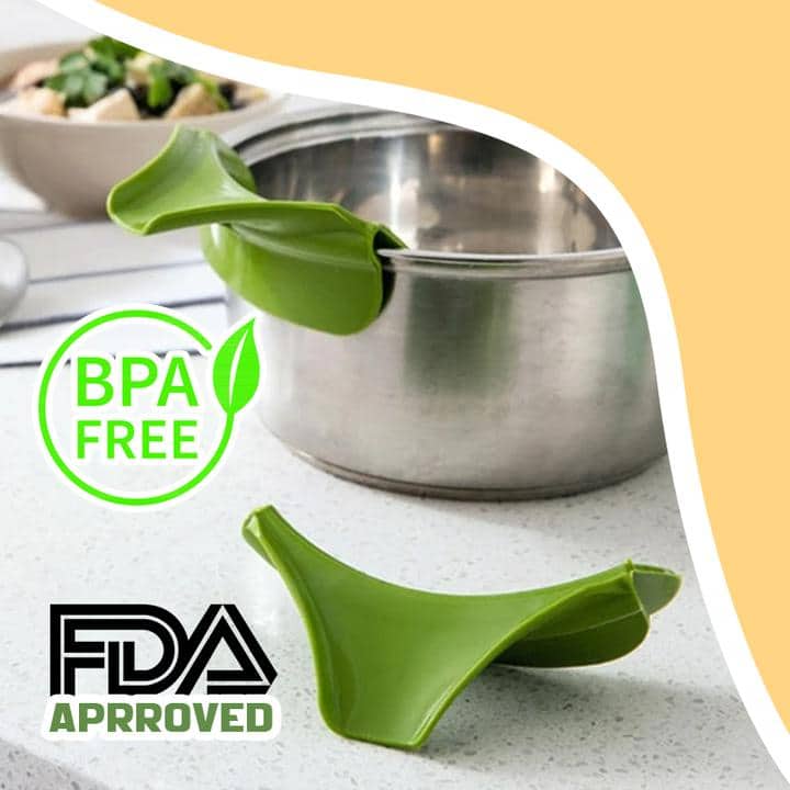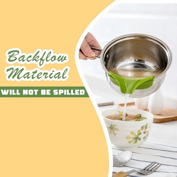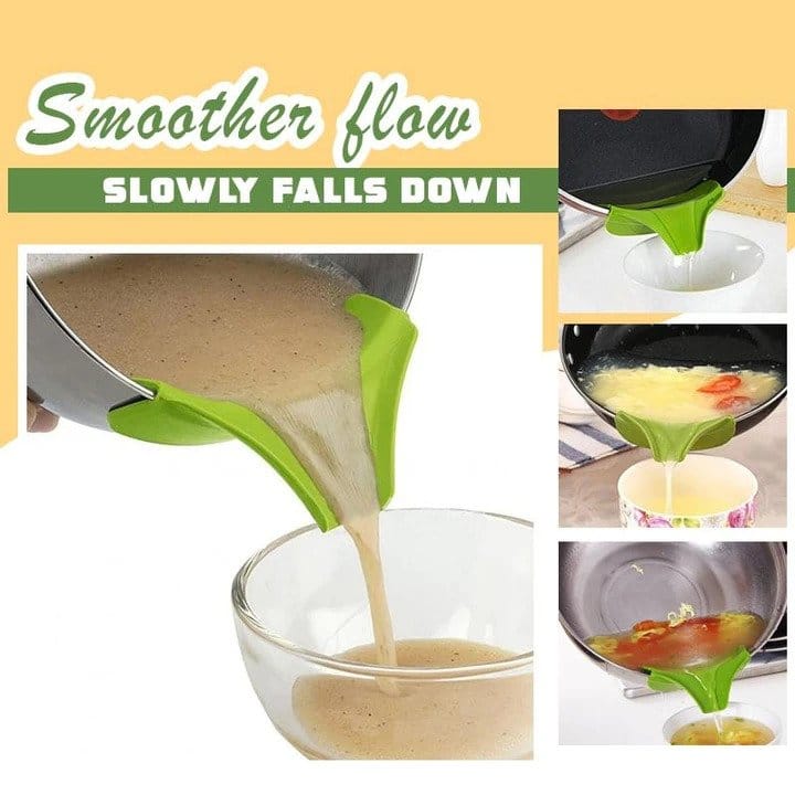 The Silicone Funnel is an ATTACHABLE SPOUT that is SPECIALLY DESIGNED for Pots, Pans, and Bowls.