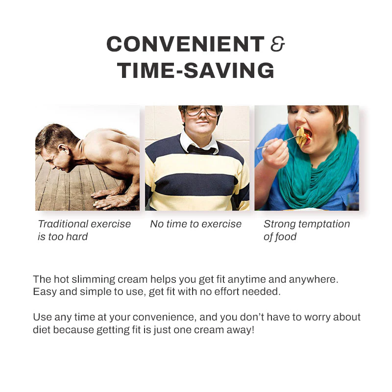 Made with unique slimming formula, this product works like a skin tightening cream quickly firming the body in problem areas. Get the shape of your dream with ease and restore your confidence!