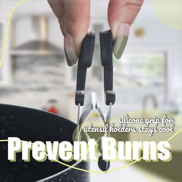 Made of food-grade silicone and high-heat resistant, this flexible clip is designed to fit all utensils and keep them close at hand!