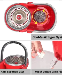 Spin Mop And Bucket Floor Cleaning System has the following product features: