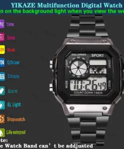 YIKAZE Digital Watches For Men Sports Waterproof Bracelet Clock Gold Electronice LED Wristwatch Man Casucal montre homme relogio