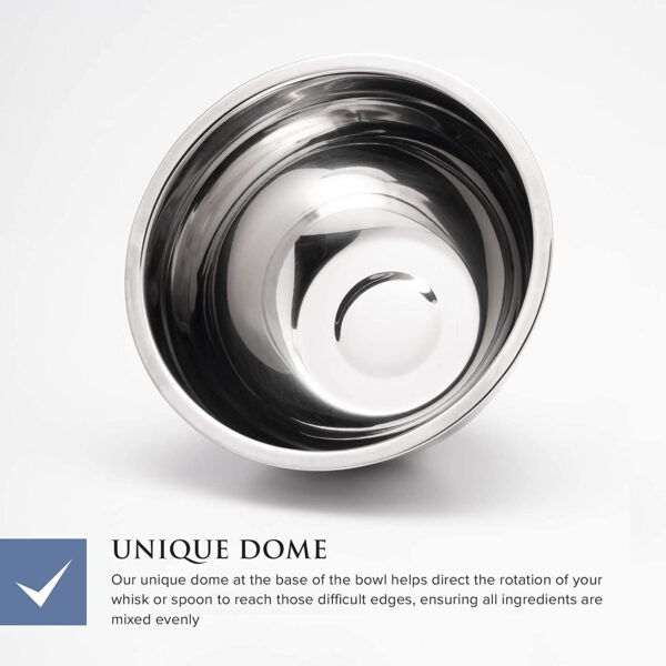 Stainless steel bowls for ultimate food storage, cooking and cooking preparation. The wide, straight edge provides a firm grip for pouring, mixing, whisking, preparing and serving food.