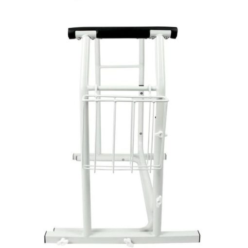 The safety rail base is a wide 26.5”, easily fitting in smaller bathrooms. Freestanding safety rails can be used with standard and elongated toilets or at the sink or vanity. The bottom rails are 19” deep, adding tip-proof stability to the frame