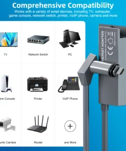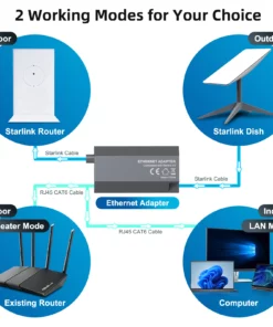 Starlink Ethernet Adapter for Dish Antenna Satellite Internet V2 Powerline Kit for Wired External Network GEN2 Ethernet Adapter