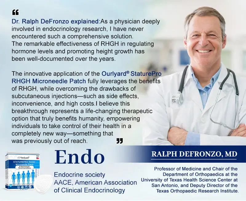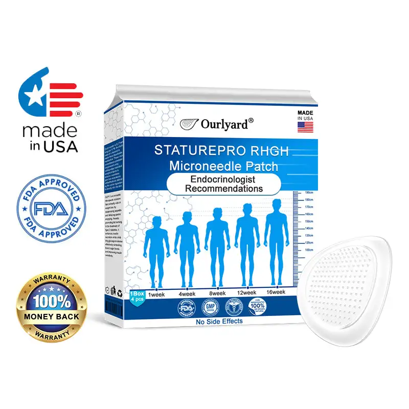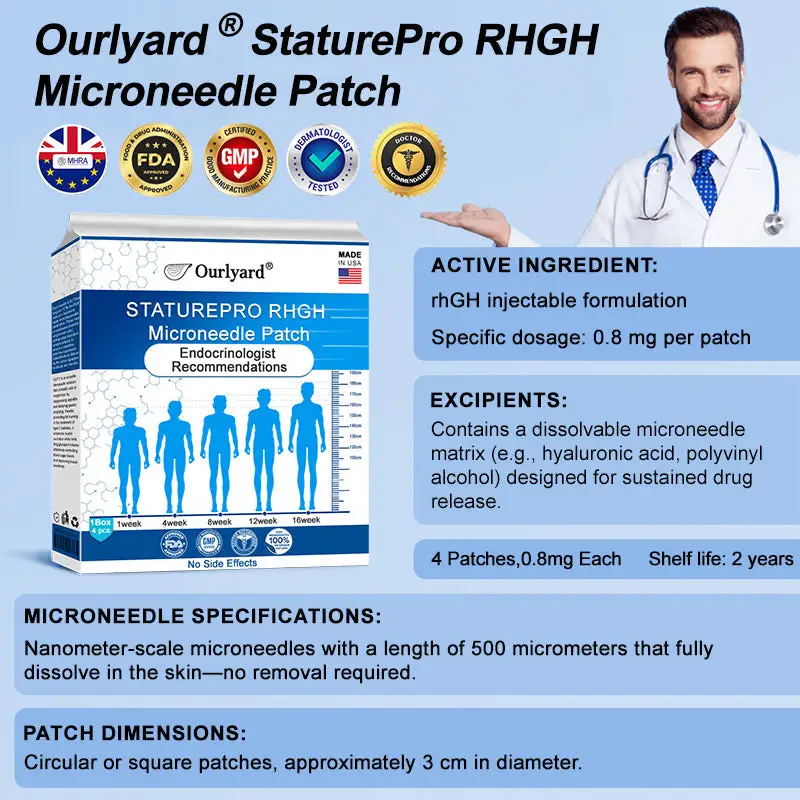 The Ourlyard® rHGH Nano Microneedle Patch is a product developed by Harvard Medical School for individuals with growth hormone deficiencies that result in short stature and underdeveloped bones (including conditions such as dwarfism, delayed puberty, and premature closure of growth plates). It combines advanced recombinant human growth hormone (rHGH) with microneedle patch technology, offering a painless, convenient, and affordable way to increase height.