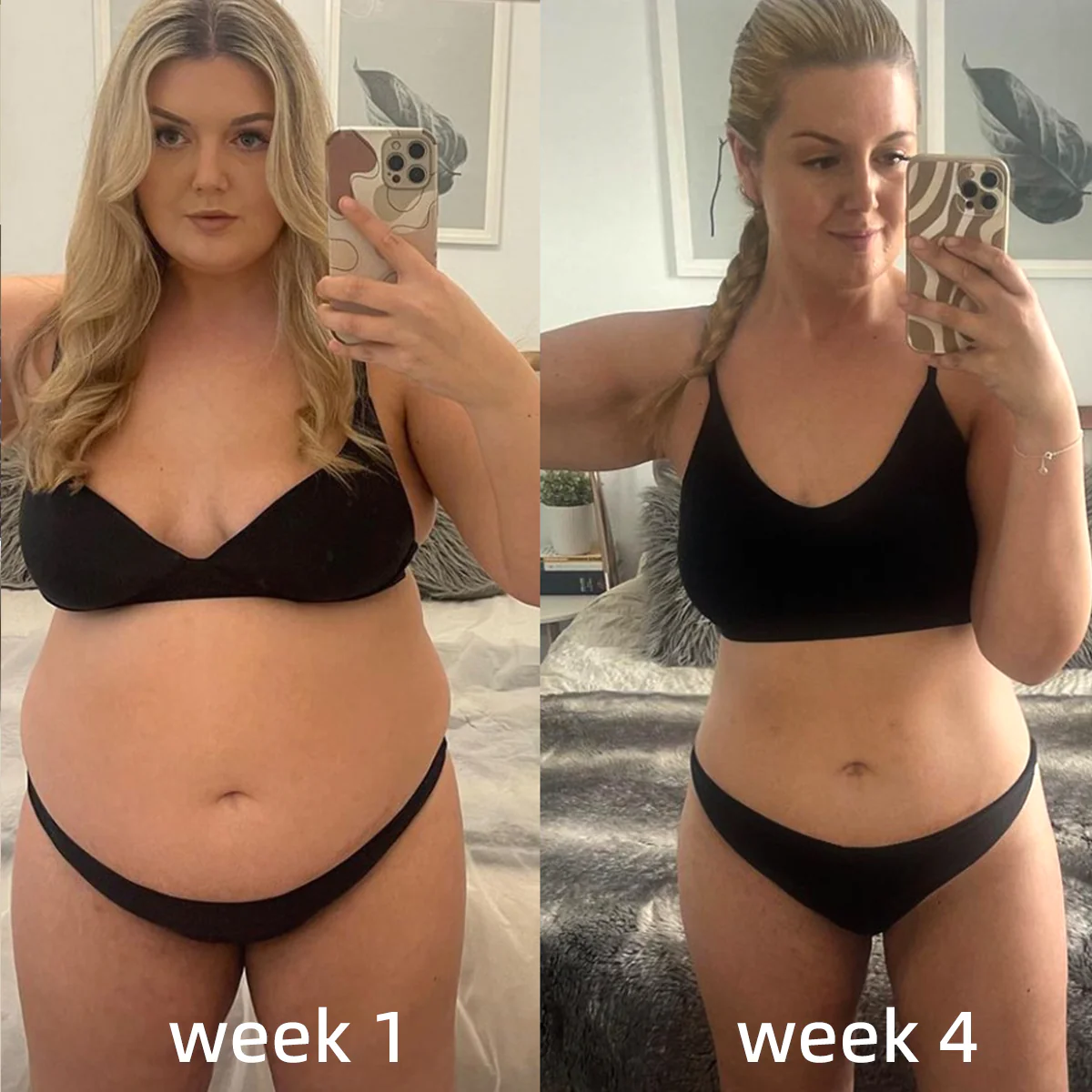 - Lying on your back, use the rubber-tipped dropper on the cap to place 4-6 drops of serum on your belly button and wait for absorption. It won’t take too long to absorb, about 1 minute or so, so don’t worry!