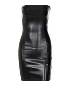 Women Summer Sexy Party Strapless Bodycon Pu Leather Slim Package Hip Black Mini Dress Sundress Female Clothing