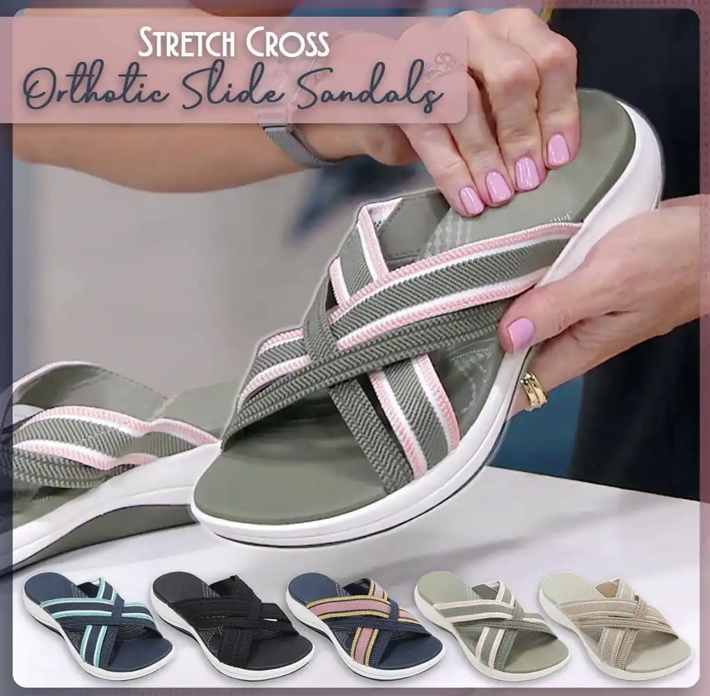 Package include: 1 pair x Stretch Cross Orthotic Slide Sandals