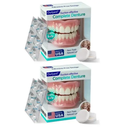 The Ourlyard® Denture Cleaning Tablets are specially designed for denture users to help you easily clean and maintain your dentures. Each tablet has a powerful stain-removal function that deeply cleans the surface of your dentures, removing food particles and plaque, while keeping them clean and hygienic. Its unique effervescent formula effectively removes stubborn stains, freshens breath, and helps reduce bacteria in the mouth.