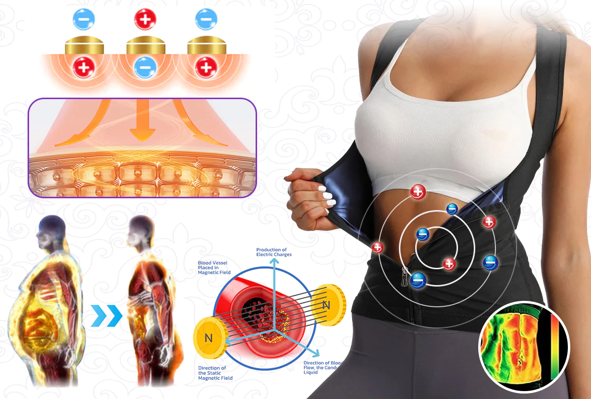 Infrared therapy is being considered as a possible support in the journey of weight loss. Far Infrared (FIR) waves possess the ability to penetrate deeply into the body, generating heat and stimulating metabolic processes. Leveraging infrared therapy, the Sugoola™ IONICWAIST Tourmaline Push Up PlusSize Women Vest administers penetrating heat to encourage natural healing processes, enhancing blood circulation and diminishing inflammation in bodily tissues. Consistent use of the vest promotes a more refined body figure, thanks to its compressive layer that aids in tightening and strengthening muscles.