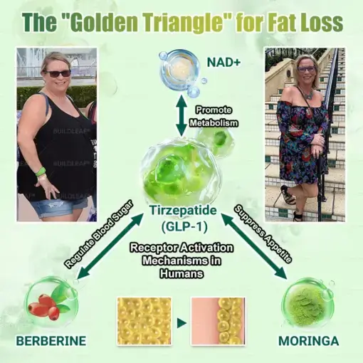 Tirzepatide combined with apple cider vinegar and the powerful Moringa extract, helps the body utilize fat stores more effectively for energy. By improving insulin sensitivity, it accelerates fat burning, especially during calorie restriction or increased physical activity. The apple cider vinegar works to stabilize blood sugar levels, preventing excess glucose from being stored as fat.